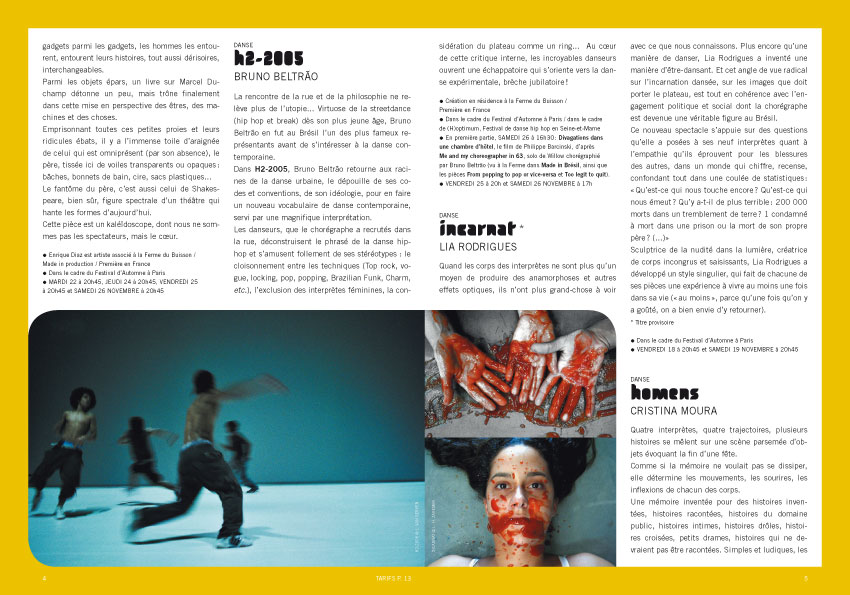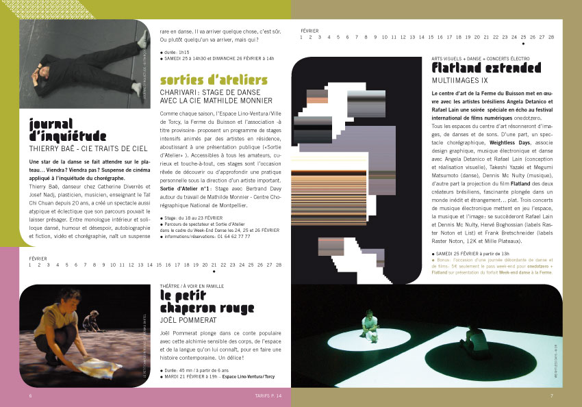 La Ferme du Buisson 2005 Création du programme de la Ferme du Buisson - Scène nationale de marne-la-vallée, avec Maroussia Jannelle. Travail effectué au sein de l'atelier MAJi Auteurs : Maroussia Jannelle Benjamin Gomez