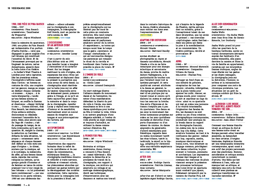 Videodanse 2009 2009 Création du programme du Festival Videodanse, édition 2010, au Centre Pompidou Commanditaire : C album Auteurs : Benjamin Gomez Axel Habrekor